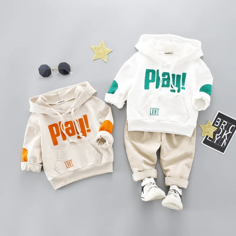 TOP 2019 new autumn children hooded letter printed sweatshirt suit boys Corduroy pants 2pcs/set Kids co