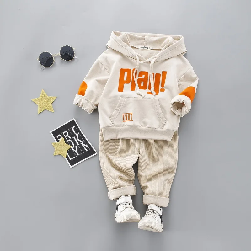 2019 new autumn children hooded letter printed sweatshirt suit boys Corduroy pants 2pcs/set Kids co