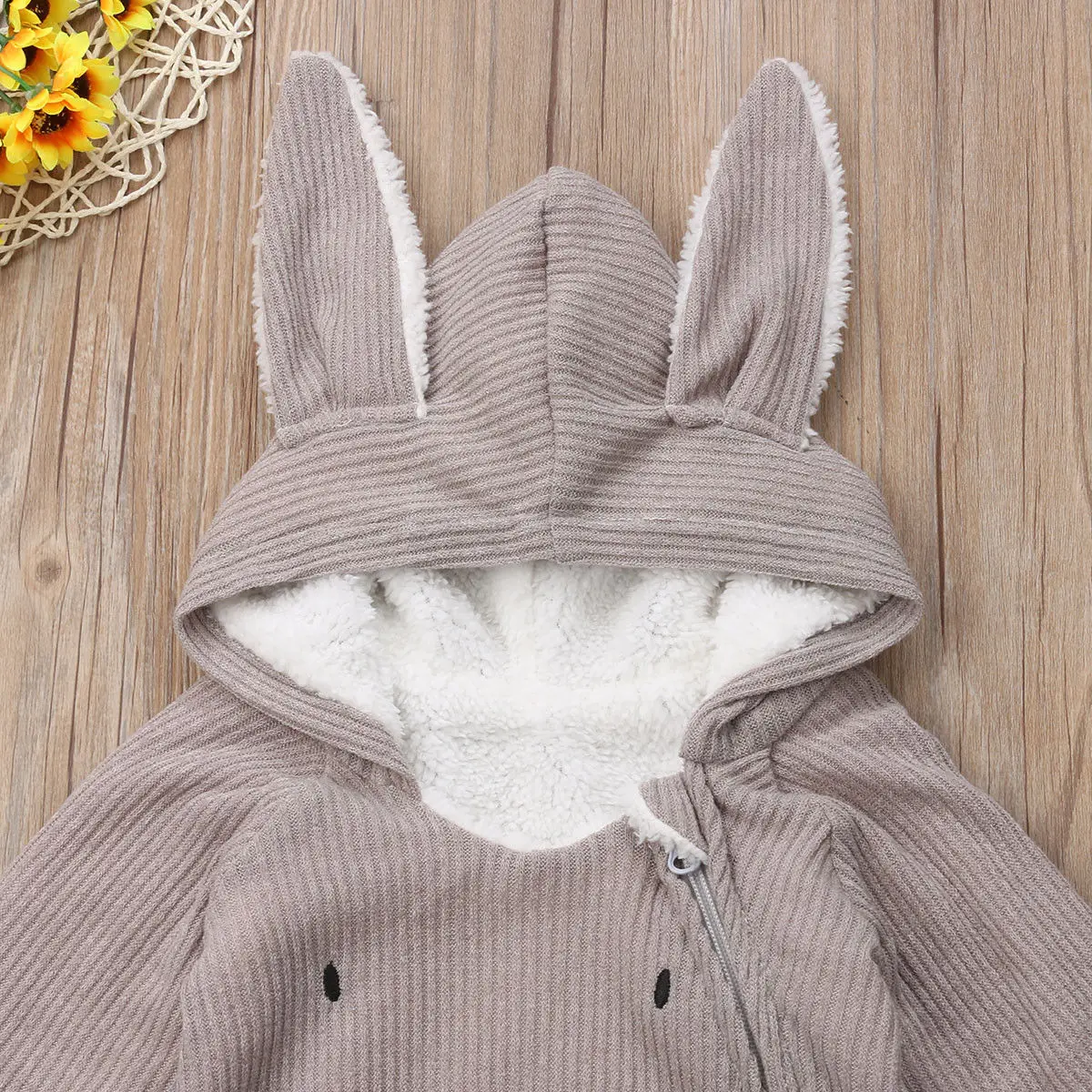 Newborn Baby Boys Girls Winter 3D Rabbit Ears Hooded Long Sleeve Romper Zipper Thicken Jumpsuit Out