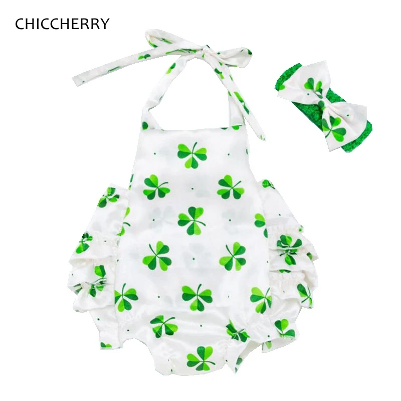 HIGH QUALITY Fashion 2020 New Arrival Green Clover St Patricks Day Outfit Baby Girl Clothes Set Kids Jumpsuit Ro