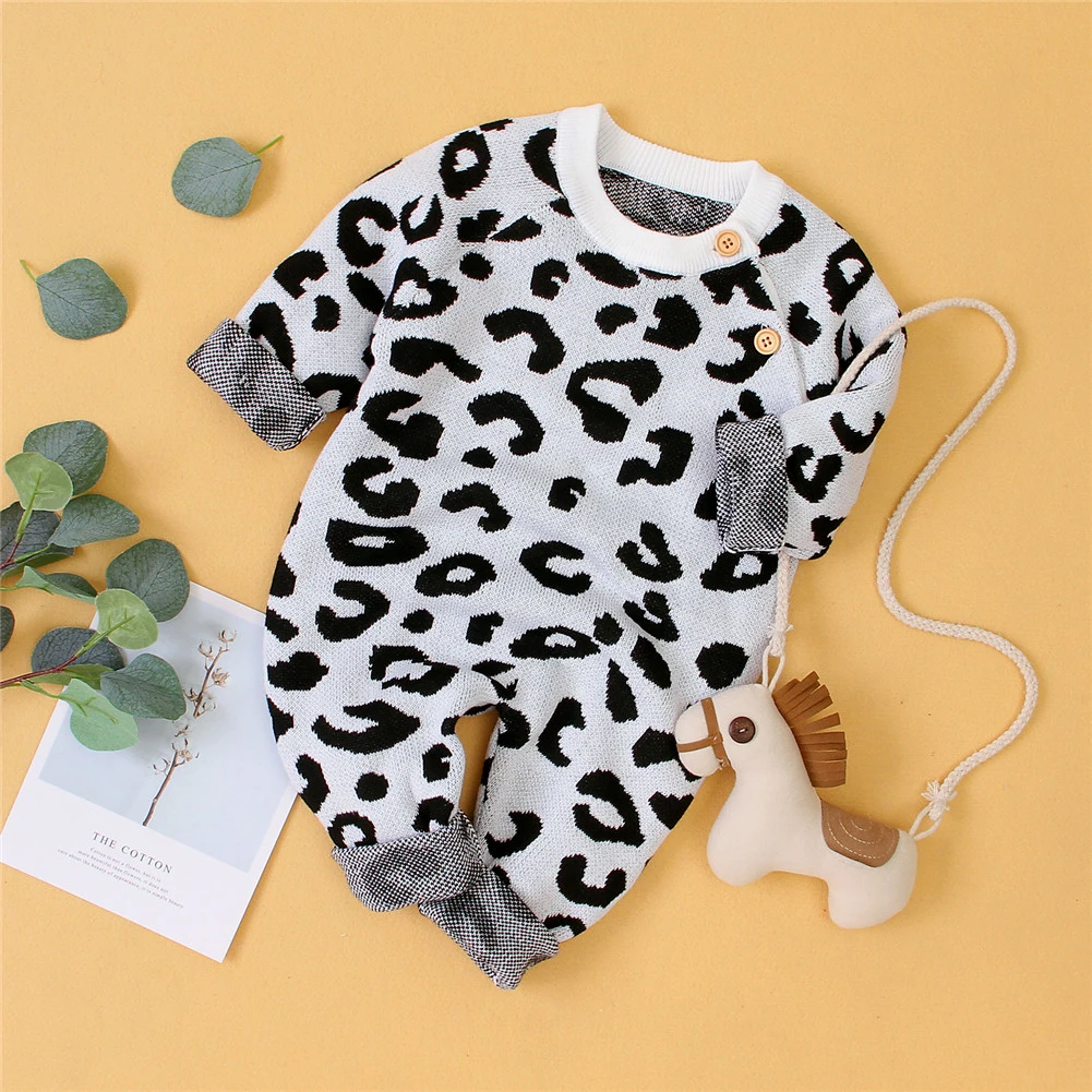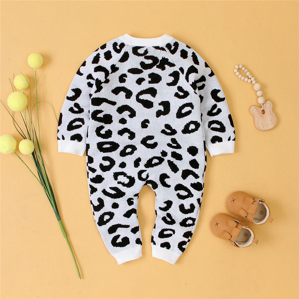 TOP Pudcoco Newborn Baby Boy Girl Clothes Leopard Print Knitted Cotton Romper Jumpsuit One-Piece Outfit