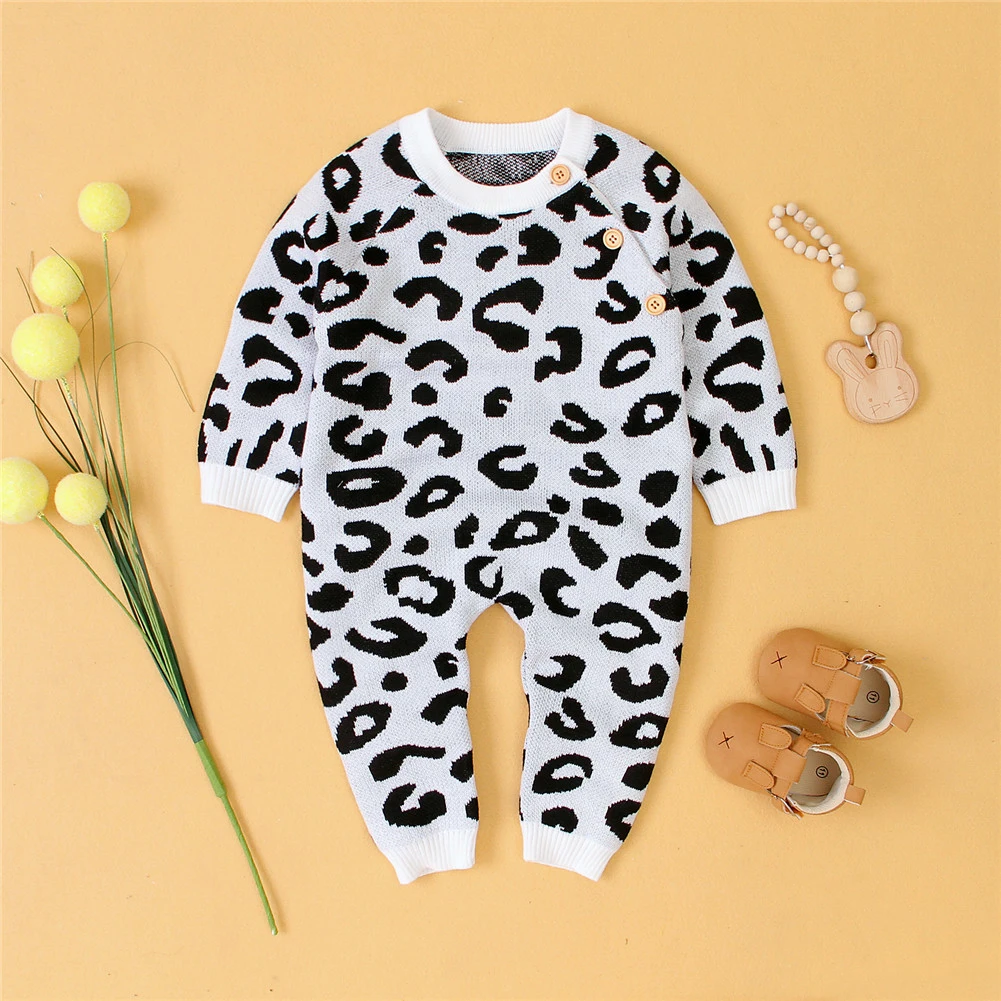 Pudcoco Newborn Baby Boy Girl Clothes Leopard Print Knitted Cotton Romper Jumpsuit One-Piece Outfit